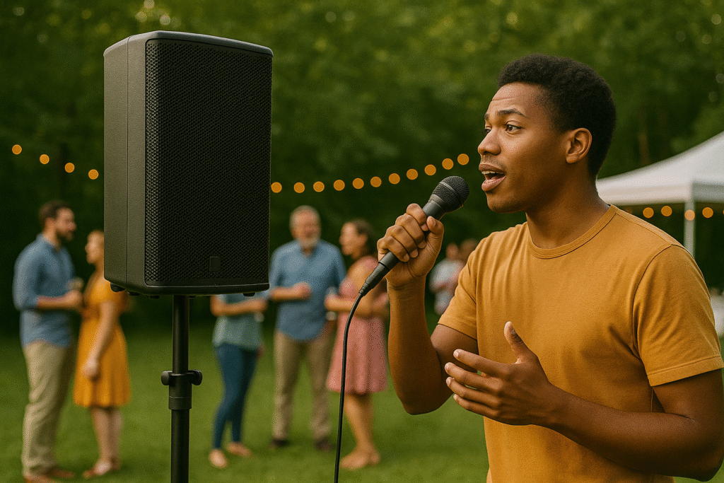 - 1 powerful audio system (on tripod) compatible with smartphones
