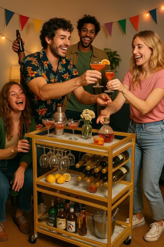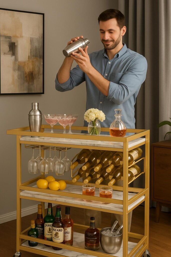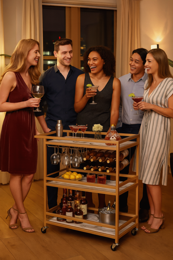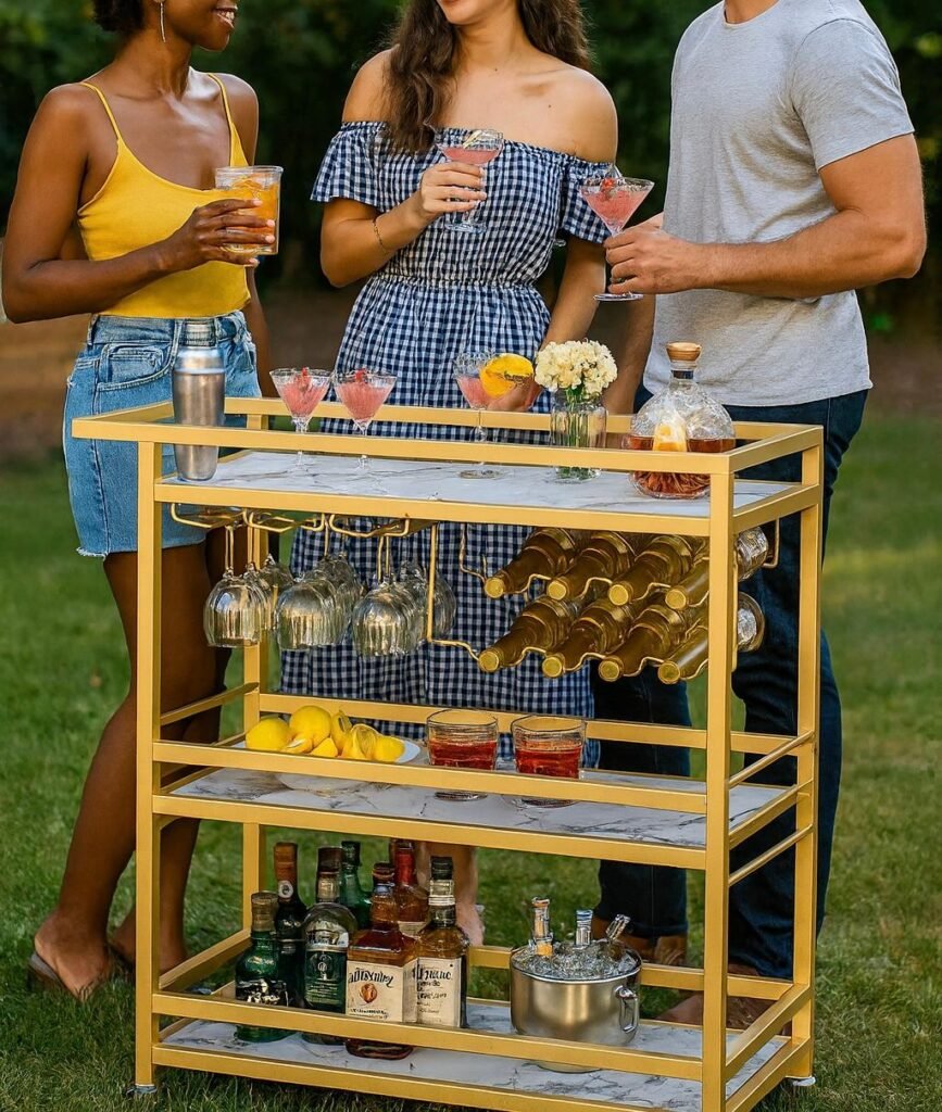 - 1 portable beverage cart with compartments for ice, bottles, and glasses